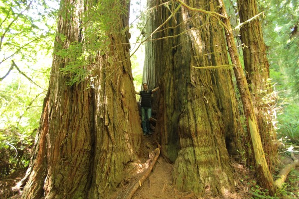 Ich steh im Baumstumpf eines umgeknickten Redwoods
