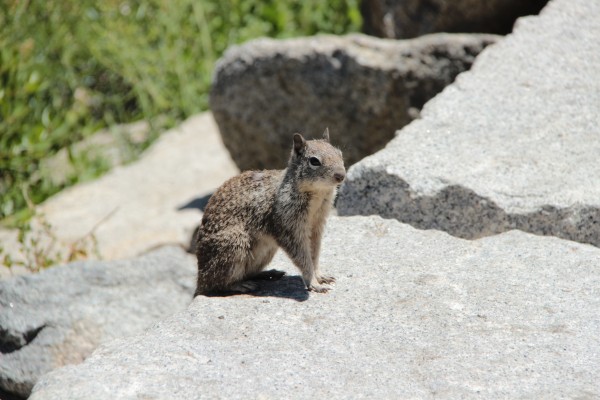 Der Höhepunkt unserer Tour ist jedoch die Fahrt zum Glacier Point. Von hier aus hat man eine beeindruckende Sicht auf den Half Dome und ins Yosemite Valley. Bei einer kleinen Wanderung erfreut uns auch die heimische Tierwelt wieder mit ihrer Anwesenheit, vor allem die kleinen Squirrels sind putzig. Wuseln überall umher und betteln (oft vergebens) um was zu futtern.